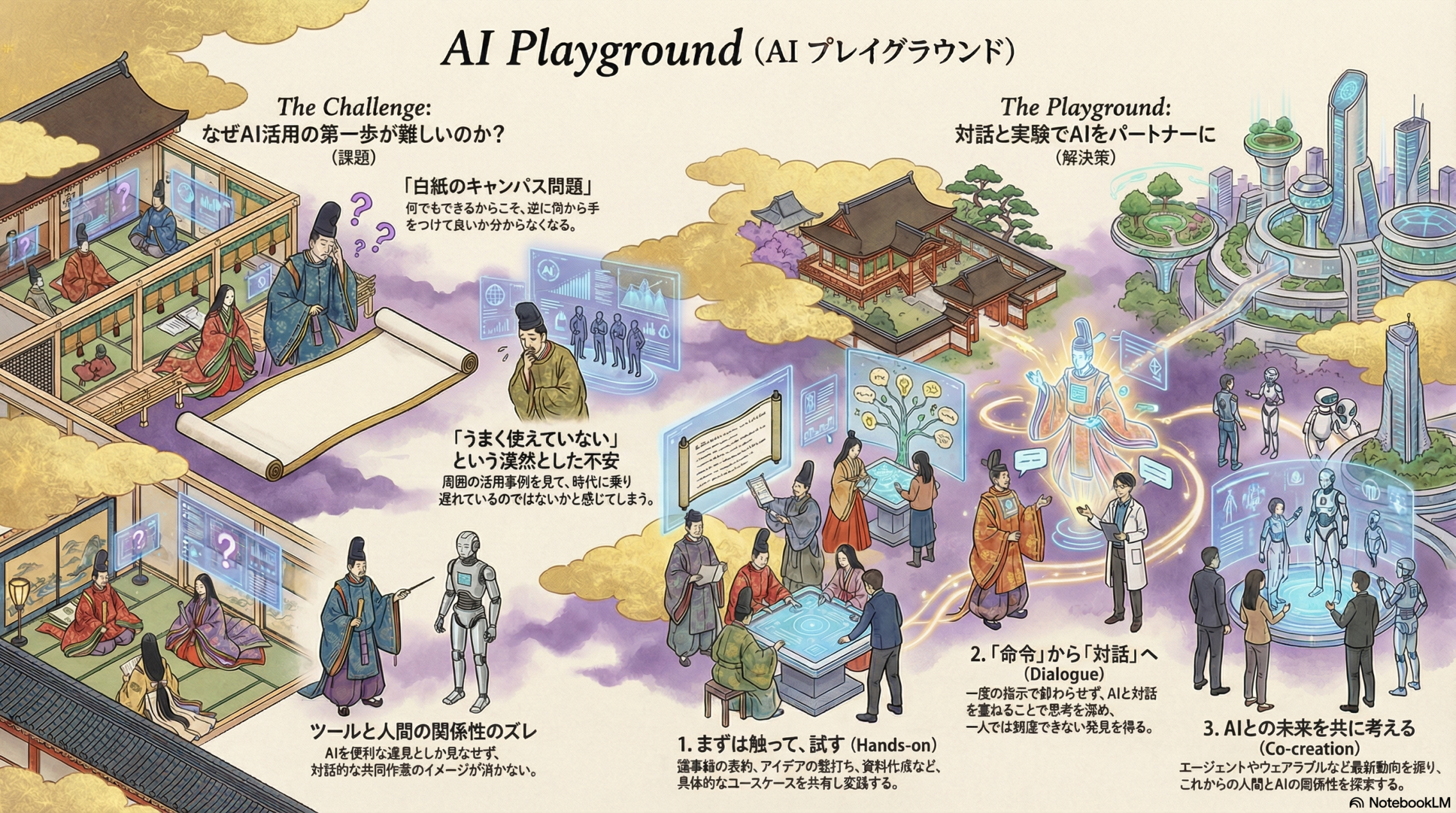 というスタンスで、AIという存在を怖がったり嫌ったりせず、面白がって関わりながら生成AIの活用方法や生成AIがあることが前提になるこれからの社会を考える場になれば良いなと思っています。