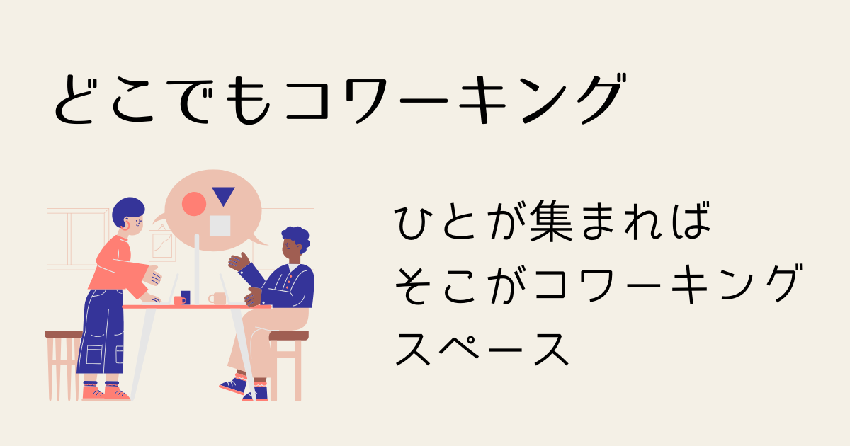 だとしたら人が集まったらそこはコワーキングスペースじゃん、ということでいろんな場所に集まってコワーキングしようというのが「どこでもコワーキング」です。